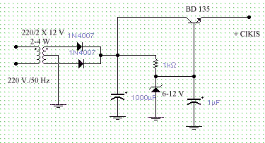 Bu devre ile max. 12.V cikis gerilimi ve 200 - 300 mA cikis akimi alinabilir.